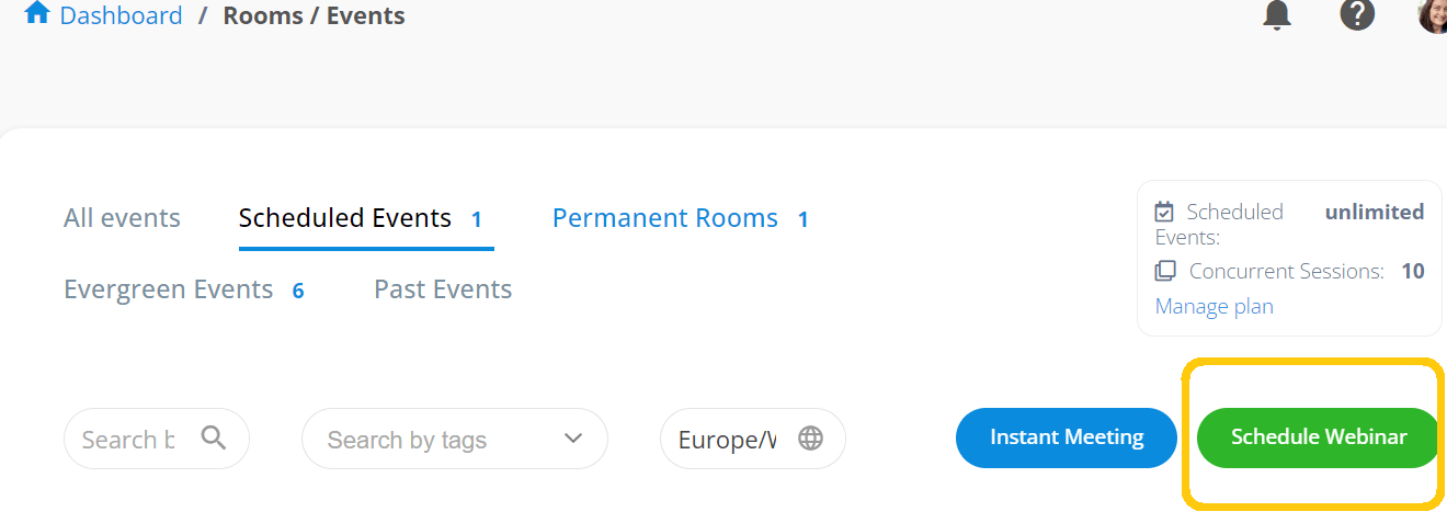 - Click the “Schedule Webinar” button