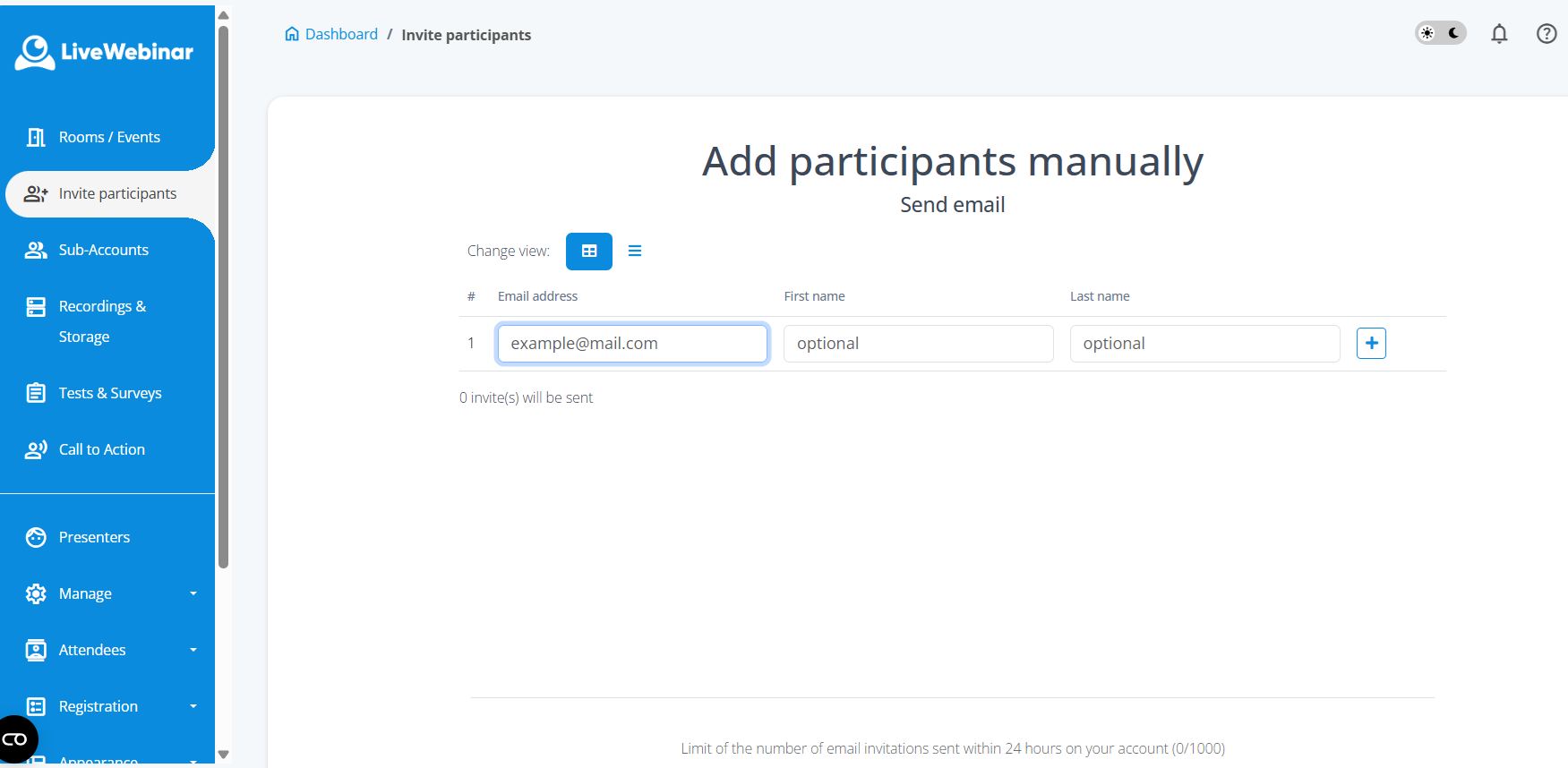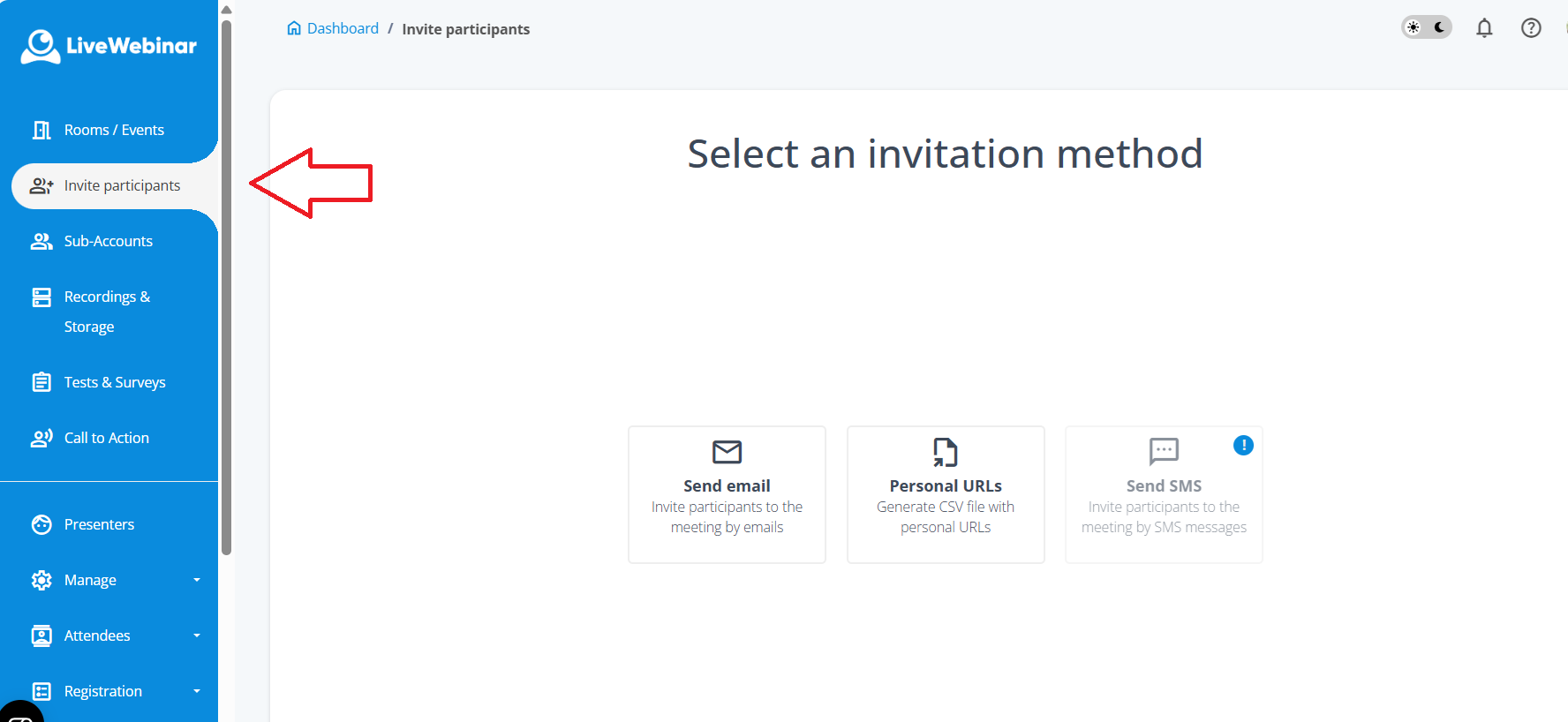 FAQ -> Meetings & Webinars -> How to invite participants to a webinar in LiveWebinar?