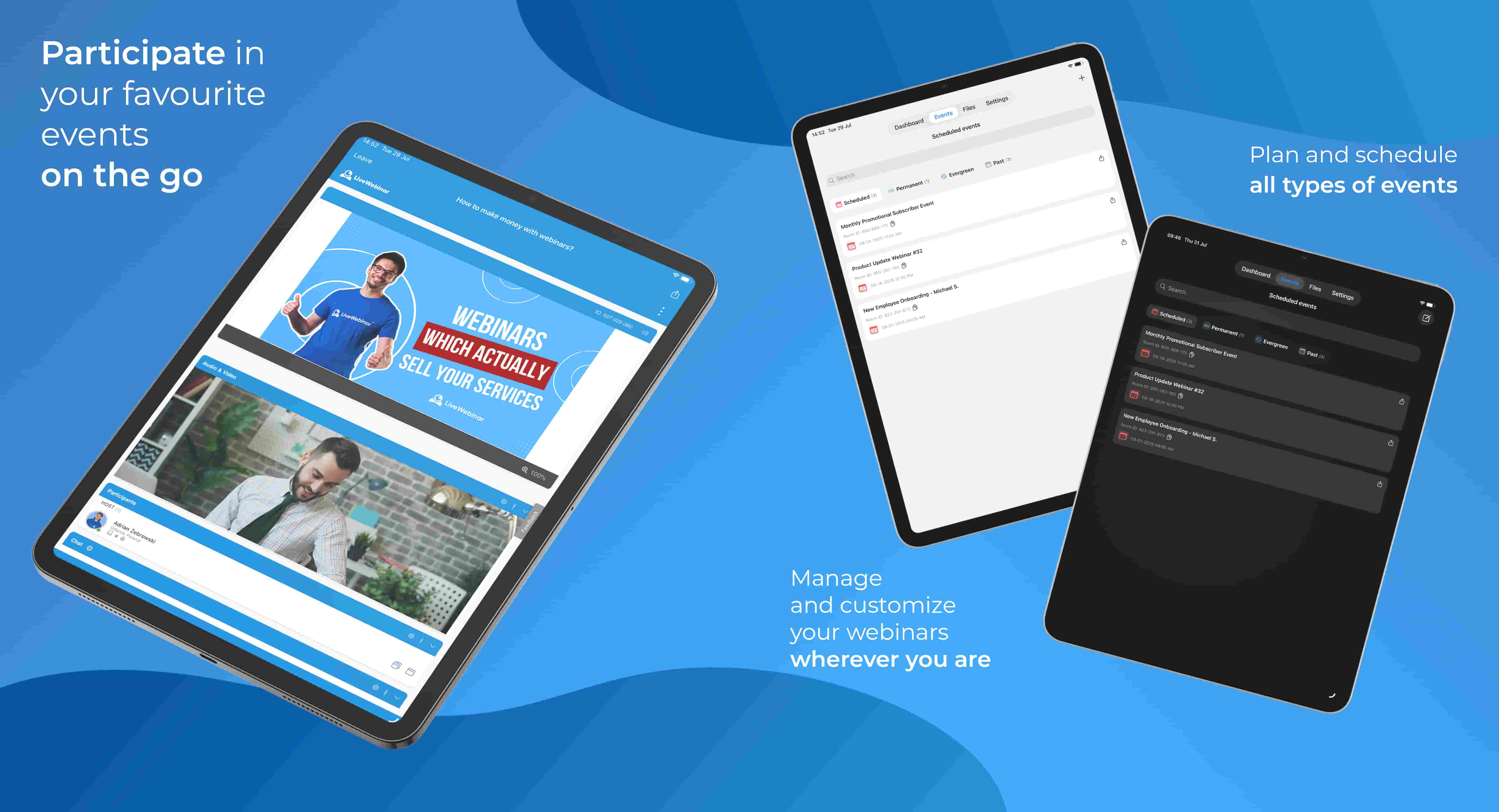 With the LiveWebinar iOS app, you can host webinars on your iPhone or iPad anytime, anywhere. Start and manage your sessions, engage with participants in real time, and follow up with leads — all while staying on the move. It’s the full power of LiveWebinar’s professional platform, now perfectly optimized for your mobile lifestyle.