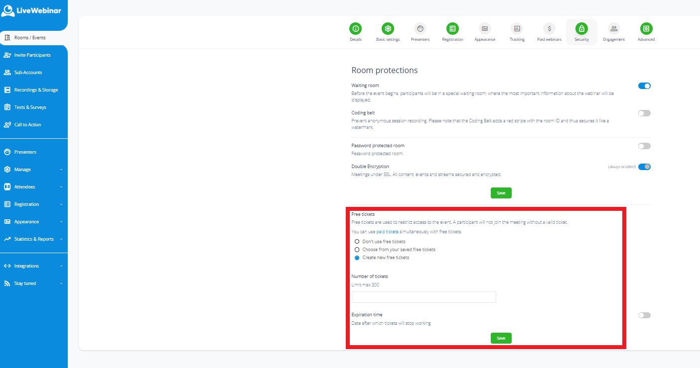 - Expiration time - If you want to constrain the time window in which the attendee may use their ticket. You can turn this option on, and off.