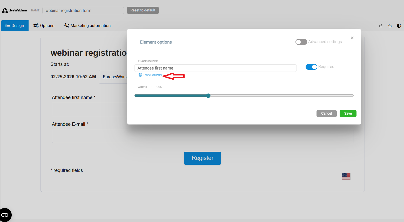 Yes! On the LiveWebinar platform, you can easily add translations to your forms — without creating separate language versions.