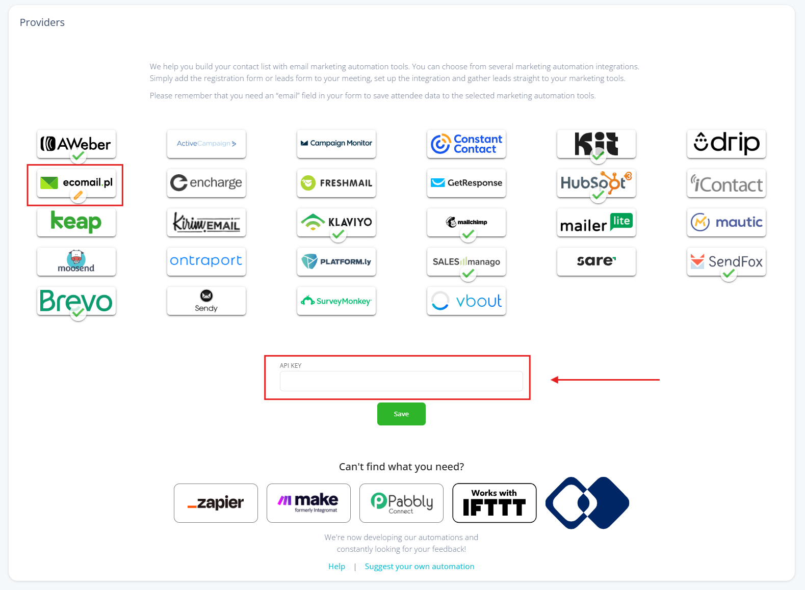 5. Finish: Save your changes. All future registrant data will be automatically forwarded to your Ecomail account.