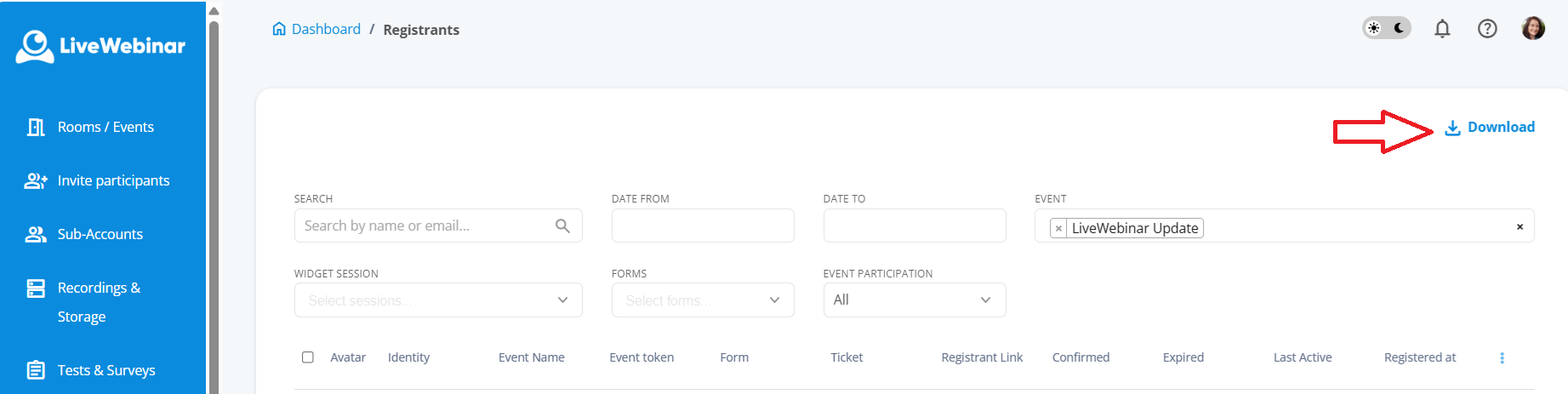 You’ll see a list of registrants, but note that this view shows only basic information (not all the fields from your registration form). To view and download all collected data, click Download to export the XLSX file.