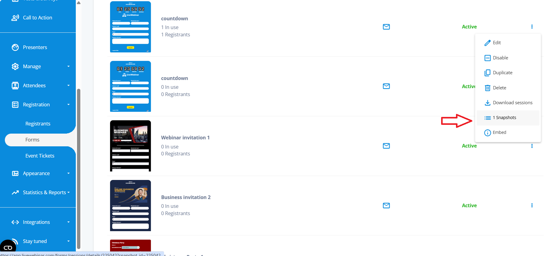 o You can also open the Forms section and download a snapshot of a selected form.