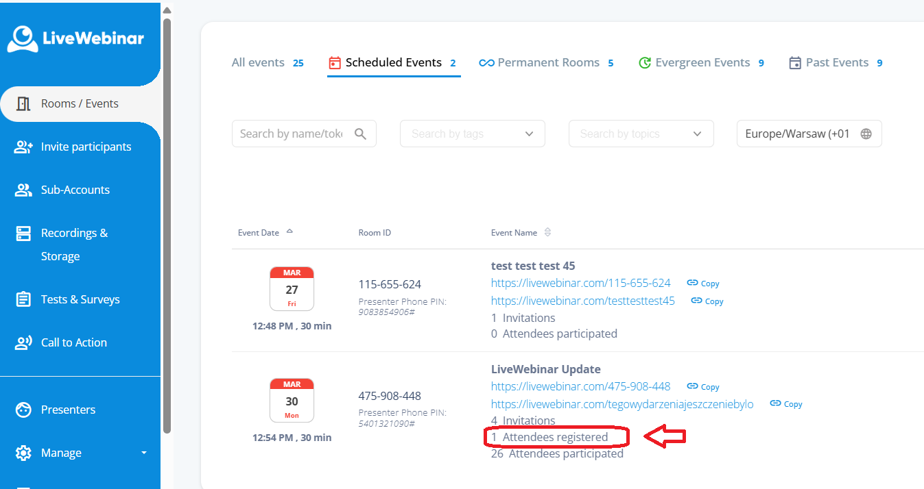 o Click “Attendees registered” – this will automatically apply the correct filter.
