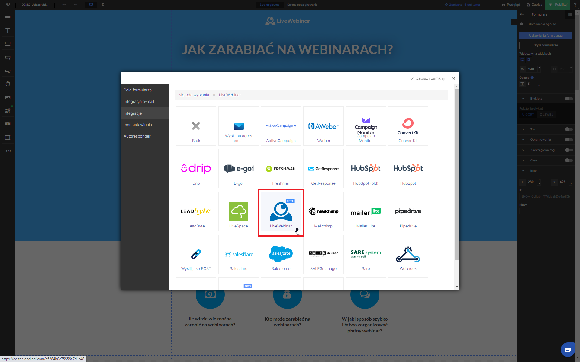 Często zadawane pytania -> Integracje -> Jak zintegrować Landingi.com z LiveWebinar?