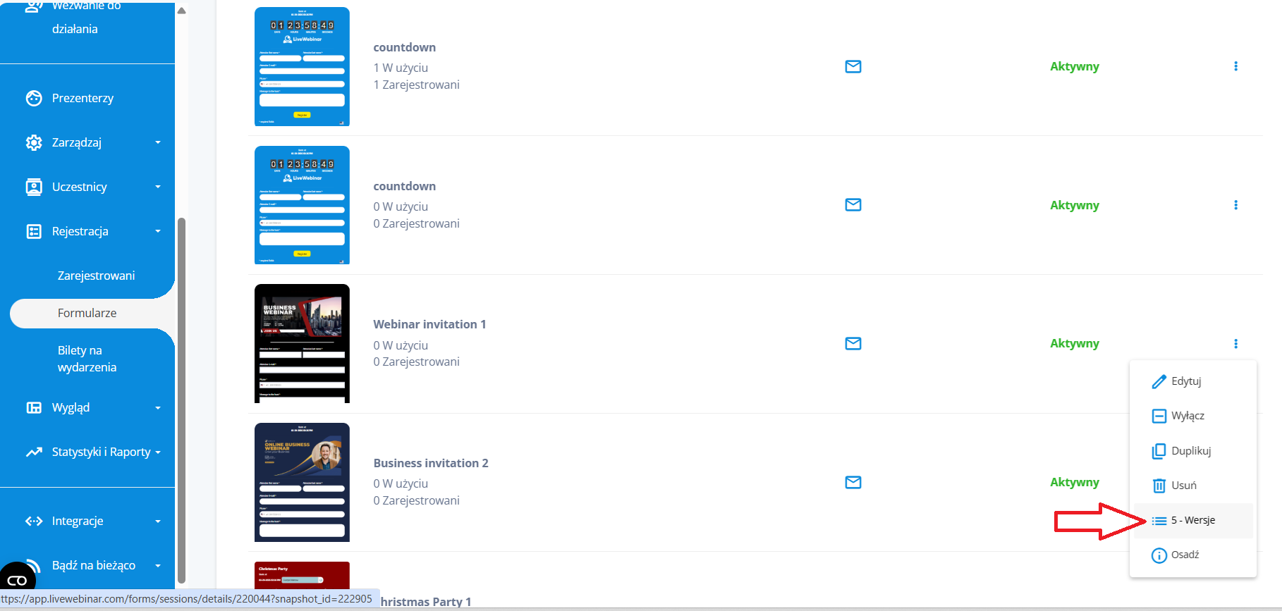 2. Z poziomu listy formularzy: