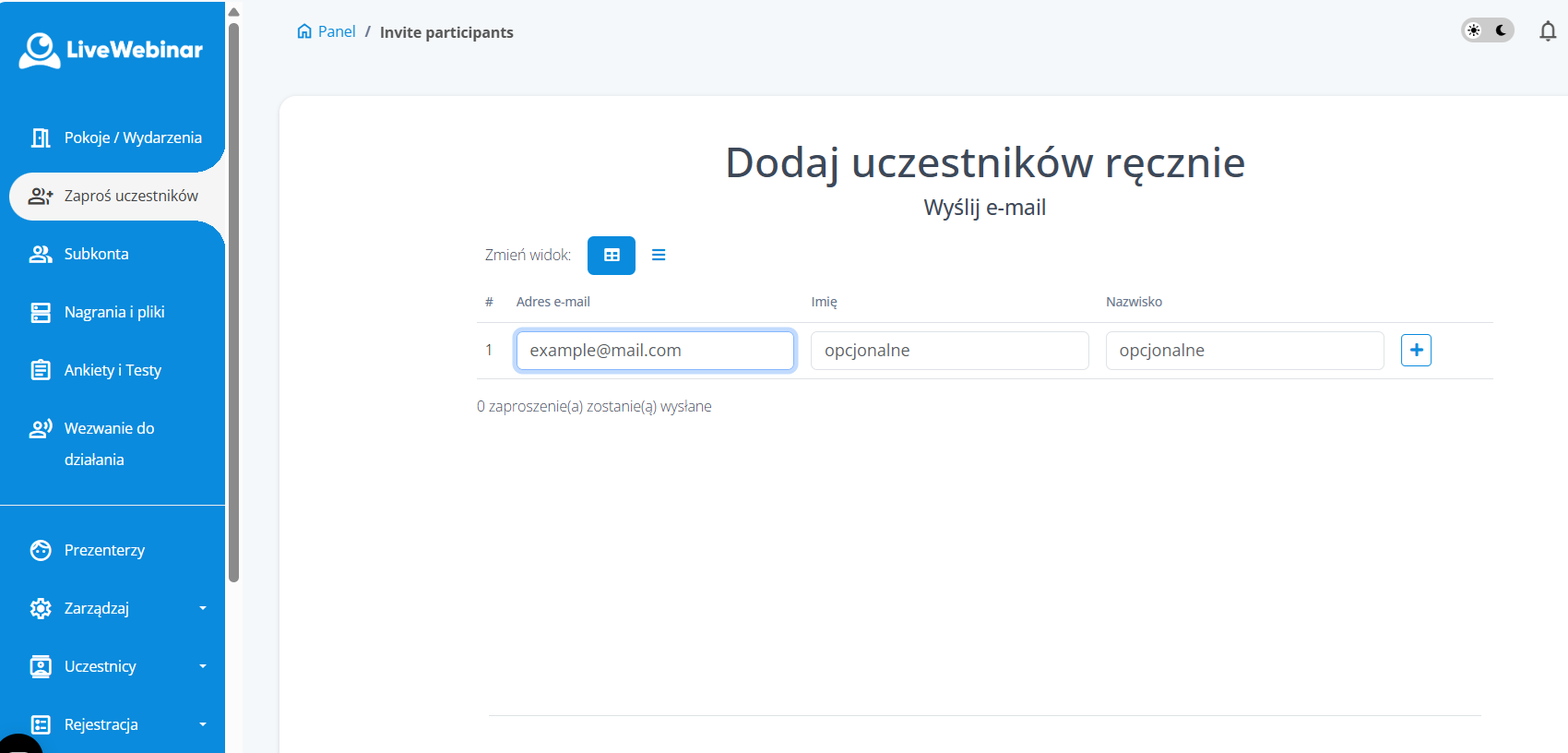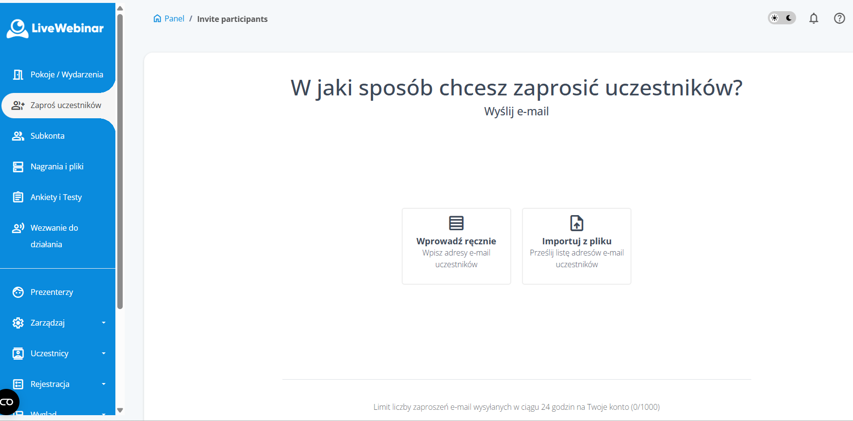 Często zadawane pytania -> Spotkania & Webinary -> Jak zaprosić uczestników na webinar w LiveWebinar?
