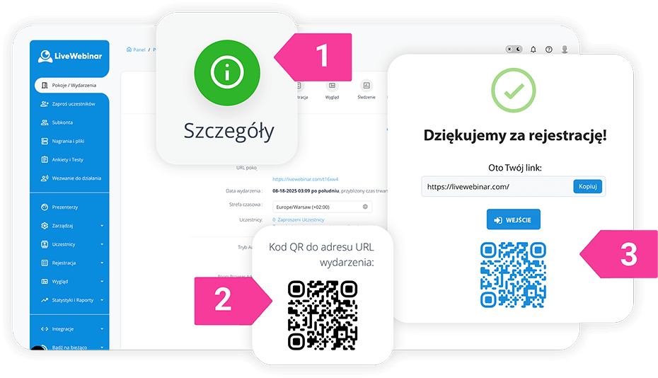 Bez linków. Bez pisania. Dzięki dostępowi do kodu QR LiveWebinar, uczestnicy mogą dołączyć do wydarzenia w kilka sekund.
